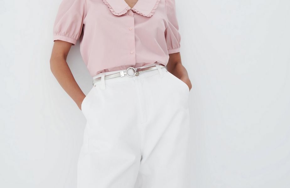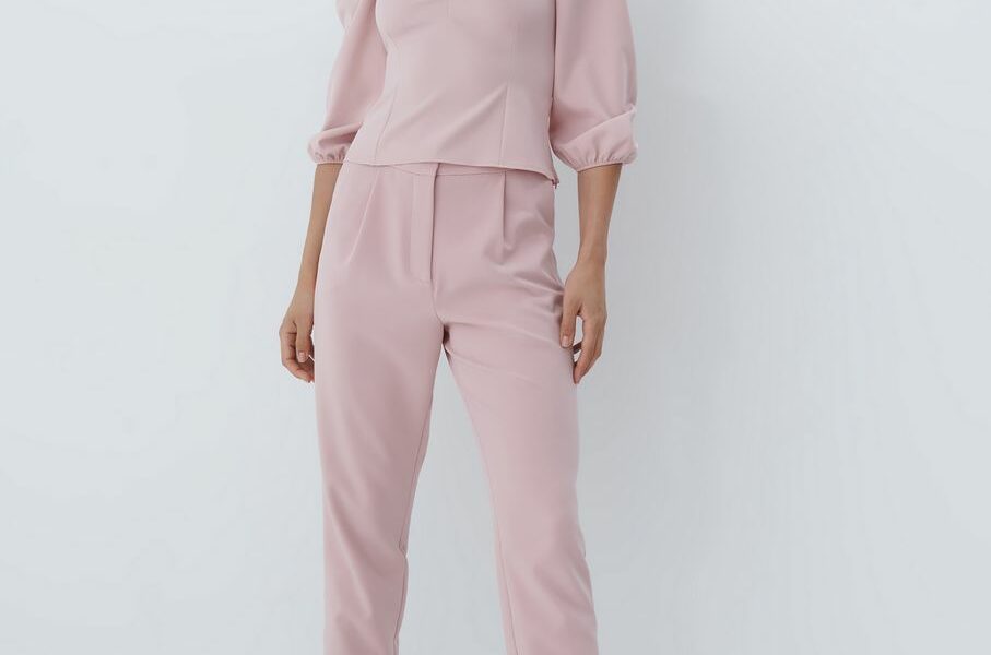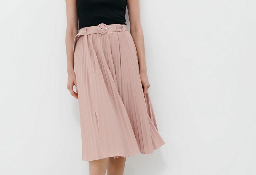 Osvojila nas je i bluza s kvadratnim izrezom u pastelnoj pink boji sa skrivenim bočnim zatvaračem kao i plisirana suknja s pojasom visokog struka.