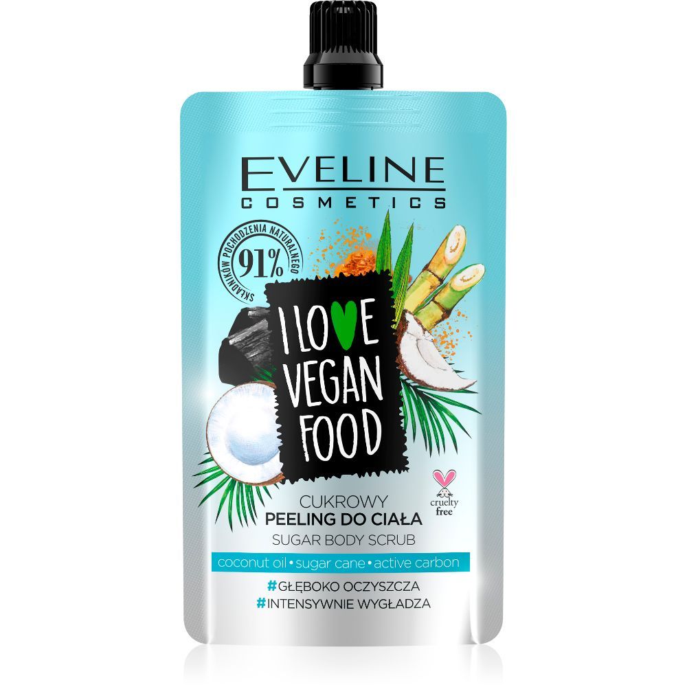Eveline I love vegan food piling za tijelo kokos detox aromatični, veganski piling sa šećernom trskom i aktivnom glinom duboko pročišćava kožu od nečistoća nakupljenih na njenoj površini. Zahvaljujući kokosovom ulju koža je učvršćena, nahranjena i intenzivno regenerirana. Eveline piling za tijelo i love vegan food kokos djeluje poput detox tretmana nakon kojeg koža postaje baršunasto mekana i glatka na dodir. Sadrži ekstrakt vanilije koji antioksidira i održava razinu hidratacije kože.