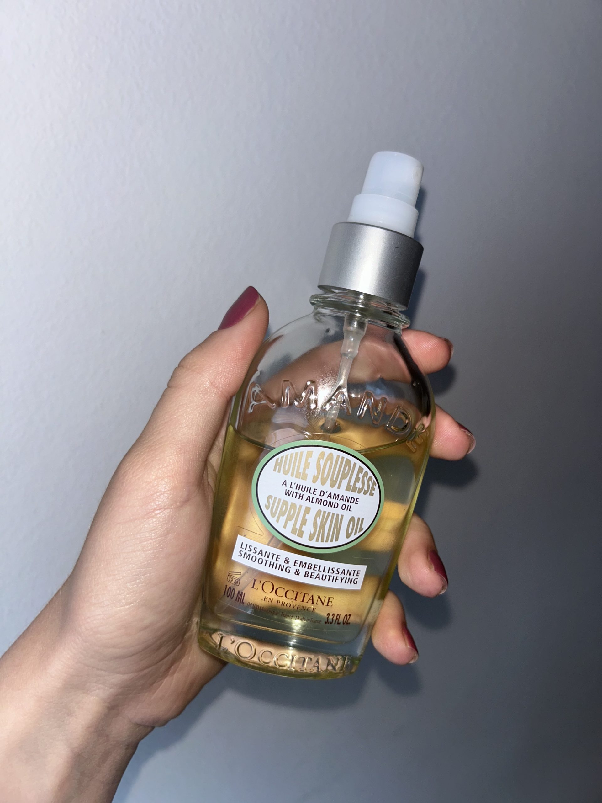 Zato sam, potaknuta svojom višegodišnjom “borbom” sa suhom kožom nakon zime odmah prihvatila priliku da isprobam ulje za tijelo brenda L’Occitane – kultno Bademovo ulje za podatnu kožu. Ovaj me proizvod odmah zainteresirao jer obećava svilenkasto mekanu kožu već nakon prvog korištenja – zapravo, baš ono što mi treba! Naime, ovo L’Occitaneovo ulje za kožu obogaćeno je dragocjenim bademovim uljem iz Provanse, koje kožu hrani, učvršćuje i vraća joj gipkost i elastičnost. Bademovo ulje ključan je sastojak brojnih proizvoda za meku kožu, pa tako i ovog, a sve zahvaljujući vitaminu E, skvalanu i omega-9 masnim kiselinama, koje prodiru u kožu i dubinski ju hidriraju. Da je bademovo ulje “lijek” za suhu i beživotnu kožu, znala sam i ranije, no kada sam istražila na koji način ovaj proizvod djeluje, bila sam jako uzbuđena isprobati ga, a dobila sam i savršenu priliku – moj probni period za ovo ulje započeo je upravo tjedan dana prije prijateljičine svadbe (za koju sam već kupila kratku haljinu), pa sam htjela provjeriti hoće li ovo ulje oporaviti moju kožu do ove prigode.