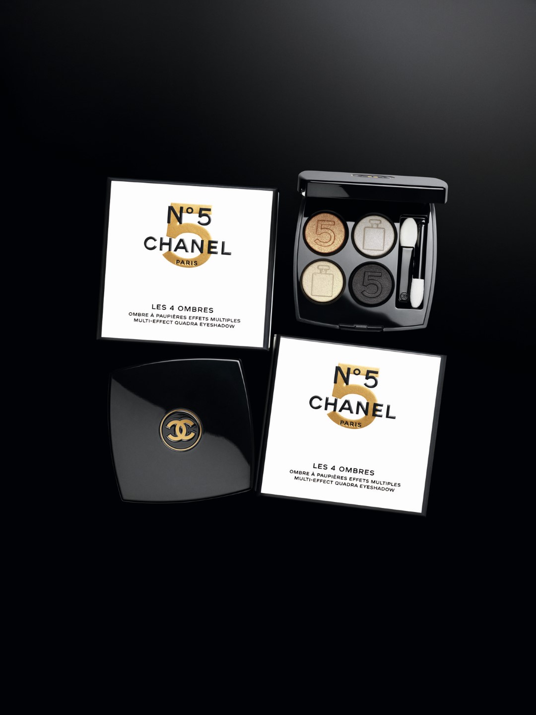 U središtu ove kolekcije nalazi se reinterpretacija palete sjenila Les 4 Ombres s estetikom N°5, izraženom kao satenska nijansa jantara ili kao biserna bijela, koja podsjeća na N°5 L’EAU. Svako od četiri sjenila može se nositi samostalno ili može pridonijeti “blendanom” izgledu. N°5 motivi na svakoj nijansi čine ovu kreaciju pravim kolekcionarskim primjerkom. Po prvi put dvije ekskluzivne nijanse OMBRE PREMIÈRE LAQUE GLITTER, dugotrajnog tekućeg sjenila CHANEL, poprimile su glitter završetak. Sada možete napraviti blistavi make-up look visokog intenziteta.