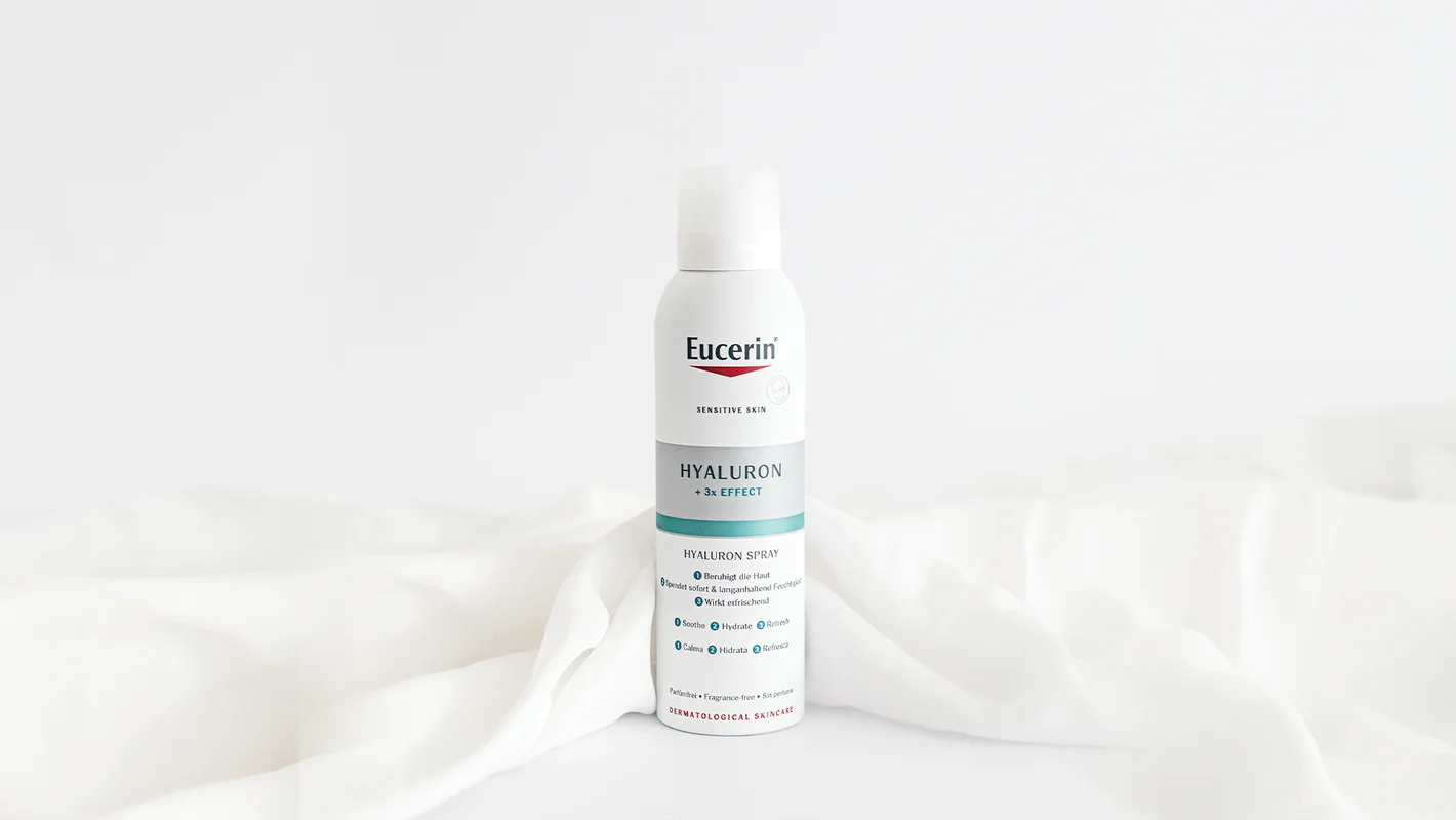 - Korak: Za dodatno osvježenje tijekom dana, pošpricajte Eucerin Hyaluron osvježavajući sprej za lice i tijelo koji pruža trenutnu, dugotrajnu hidraciju i umiruje iritacije izazvane suhoćom.