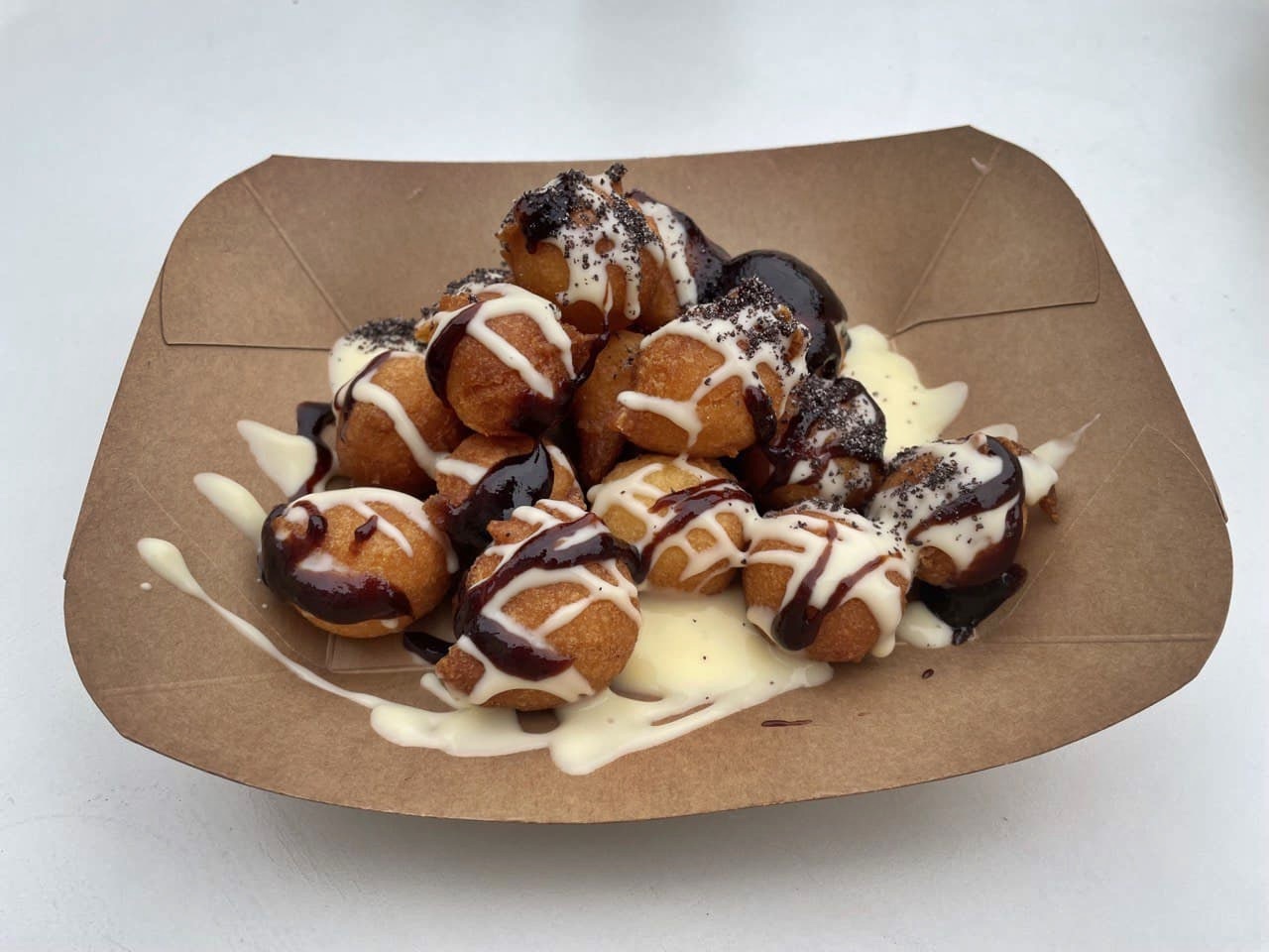 (Fritule, džem od šljiva, krema od vanilije, mak)