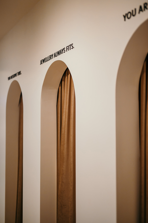 Cijeli koncept uređenja nove prodavaonice osmislila je arhitektica Matea Rajčić, čiji je primarni zadatak pri projektiranju interijera bio prenijeti priču koja se krije iza dizajnerskog nakita Ive Viljevac na sâm prostor, kao vizualna refleksija suštine i identiteta brenda. Tako minimalizam, sofisticiranost i jednostavnost postaju glavne vodilje, a prostor priča priču o – nakitu. Nakit nosi glavnu ulogu i fokus u prostoru, a sve ostalo služi kao pozadina koja će ga dodatno istaknuti, istodobno dajući toplu i ugodnu atmosferu kupcima. Iz tog razloga, korištene su čiste linije i forme, obogaćene umirujućim bojama i nježnim teksturama. Dio dućana s izložbenim nakitom naglašen je snažnom igrom zidnih niša – kontrastnim lukovima te bojom. Duboka i elegantna nijansa zelene boje preuzeta je iz dućana u Petrinjskoj, čime se slijedi estetska prepoznatljivost brenda. Velika pozornost pridana je osvjetljenju, pa tako blaga i decentna ambijentalna rasvjeta ”omekšava” čiste i stroge minimalističke linije te pruža topao i prijateljski ugođaj.