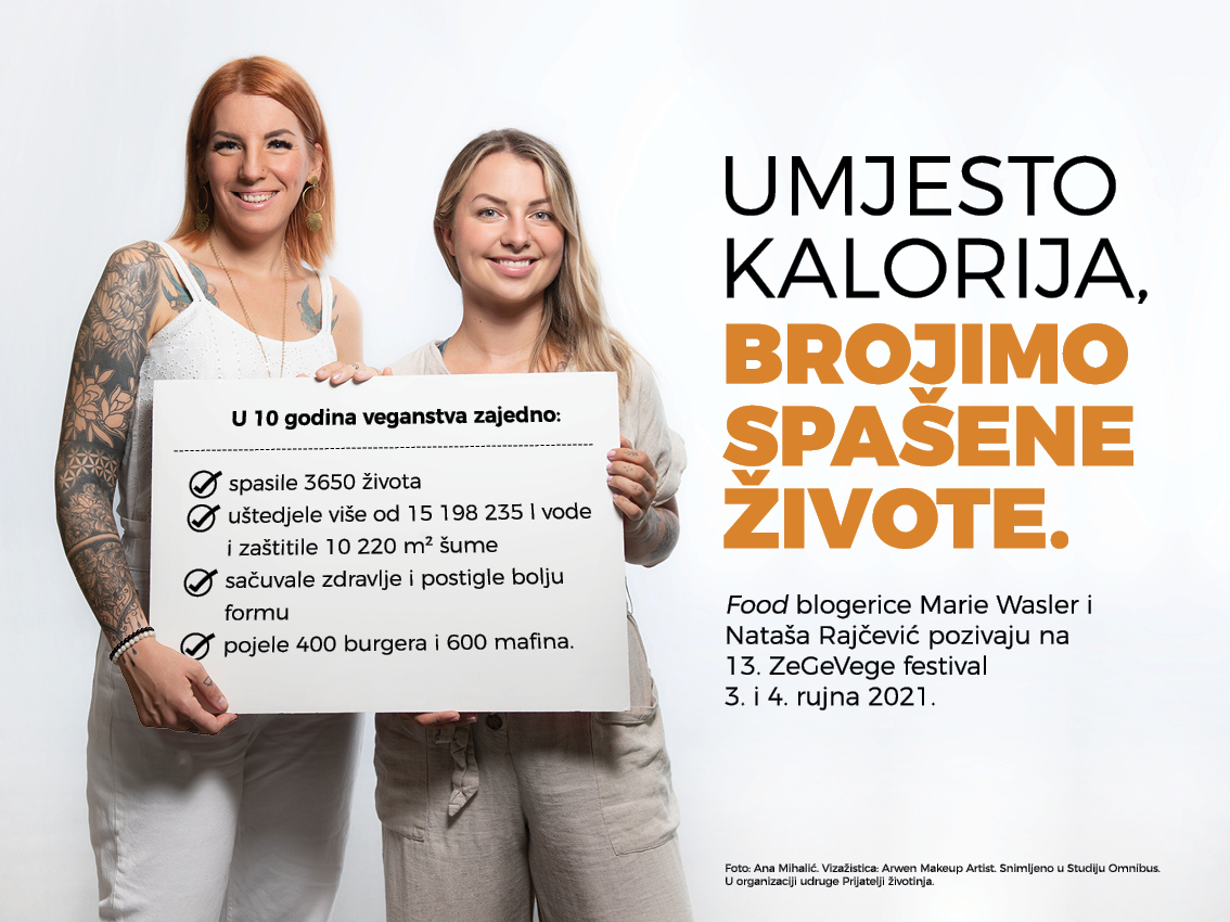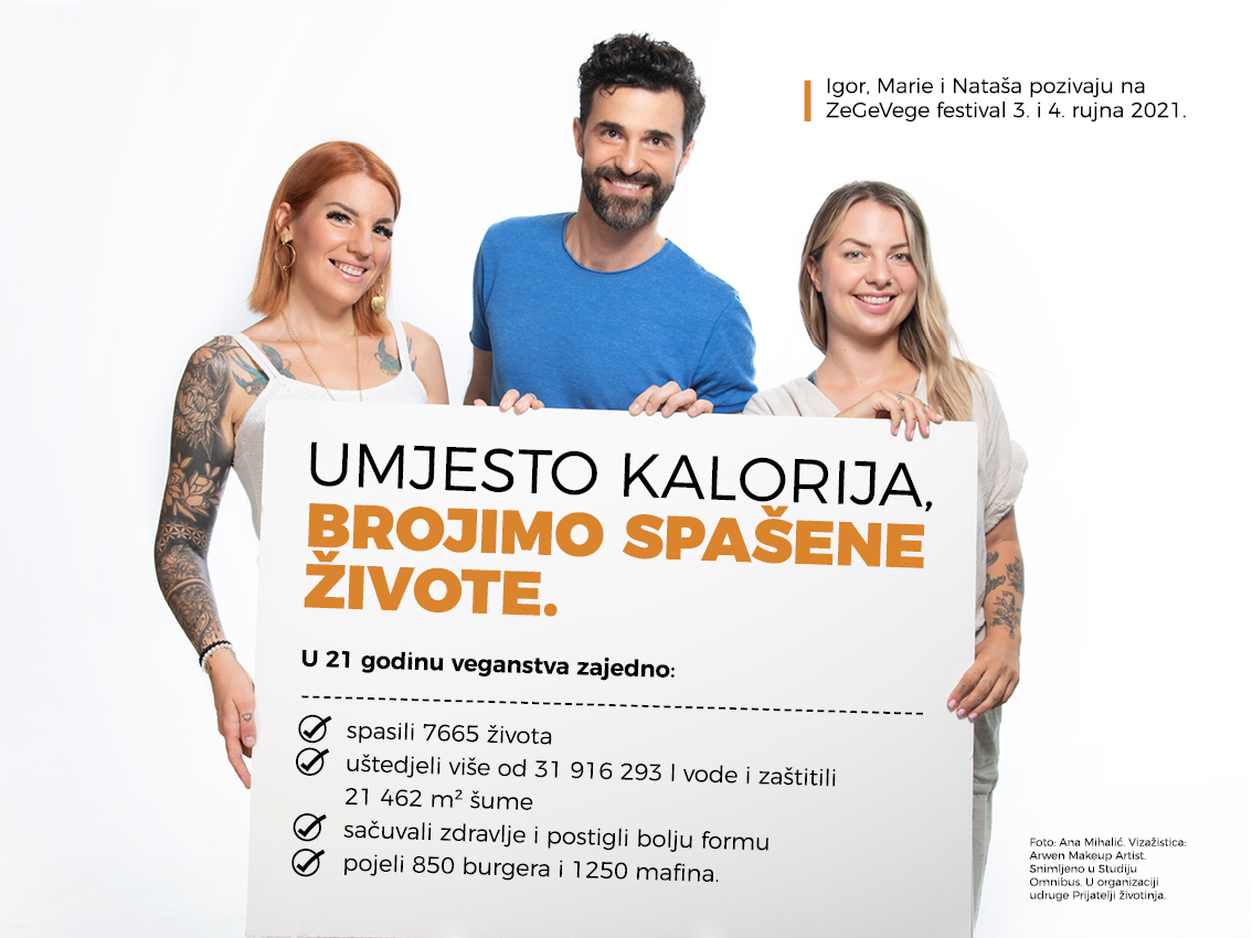 Prijatelji životinja pozivaju sve da isprobaju Vege izazov na www.veganopolis.net, a razna veganska jela i proizvode pronađu na 13. ZeGeVege festivalu koji će se održati na zagrebačkome Trgu bana Jelačića 3. i 4. rujna 2021.