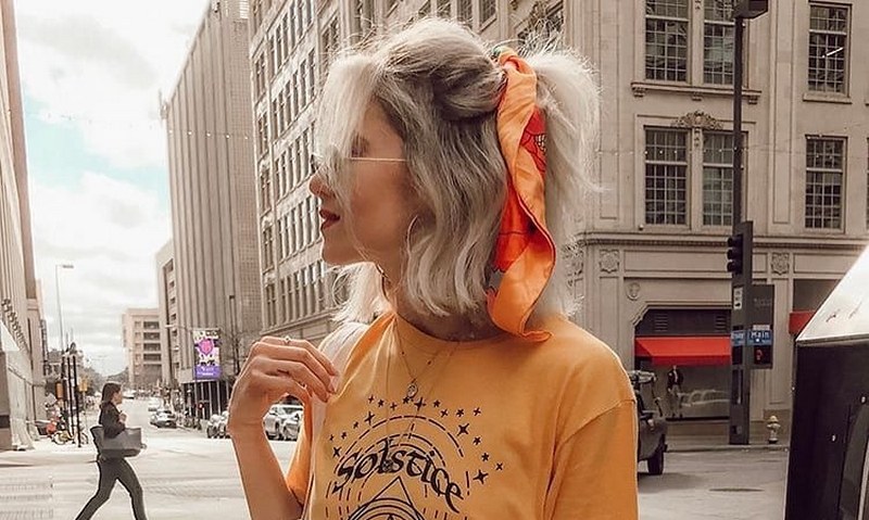 Polupodignuta frizura ukrašena maramom