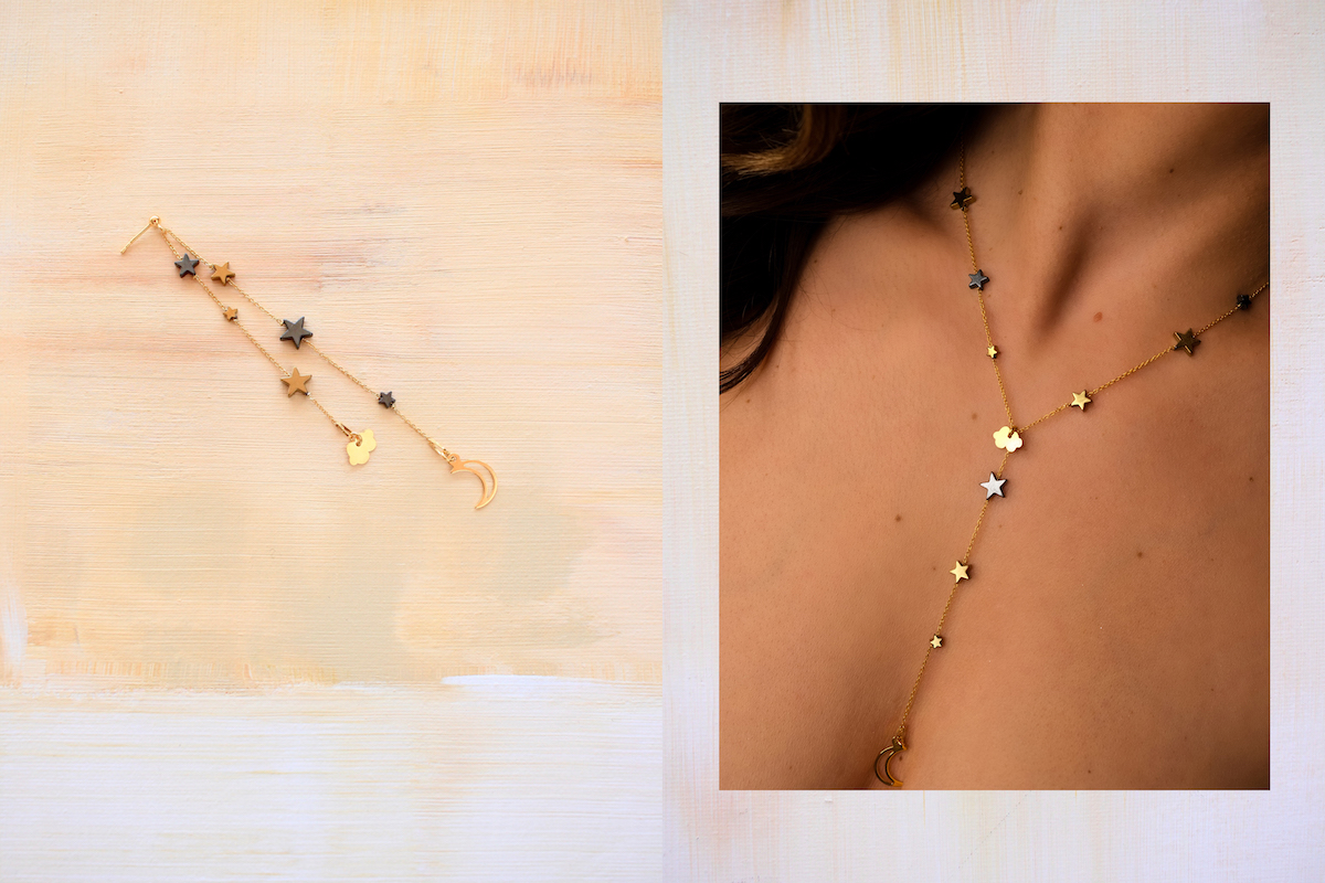 Domaći brend nakita, Cloud&Co. iza kojeg stoji Katarina Zmazek, izbacio je novu kolekciju pod imenom Constellation. Kako joj i ime kaže, nova kolekcija inspirirana je noćnim nebom i zvjezdanim konstelacijama. Kao i uvijek kod Katarine i Cloud&Co. brenda glavni motivi kolekcije su polumjeseci, zvijezde, oblaci i kamenčići, ovaj put slagani tako da podsjećaju na stare karte zvijezda i konstelacija. Materijali su srebro, srebro s pozlatom, rosegold te poludragi kamenčići i sve je ručni rad.