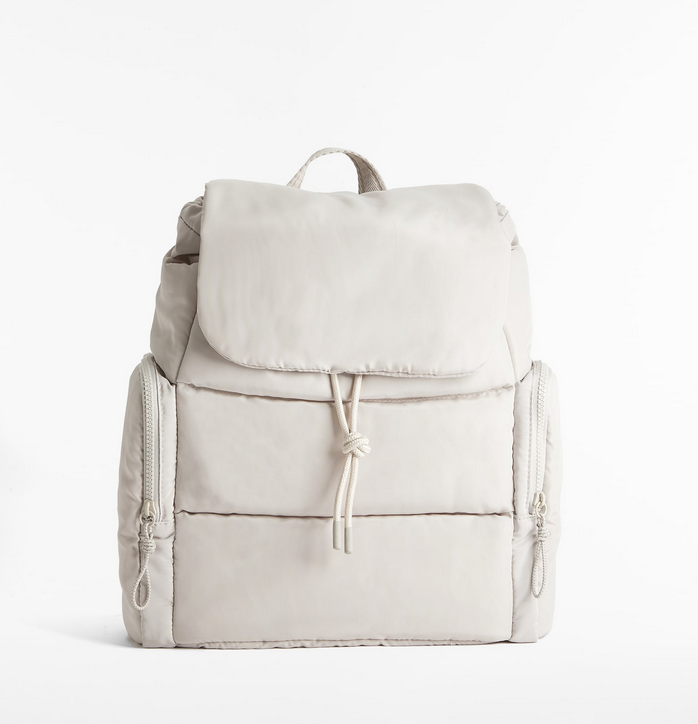 U bjeličastoj i crnoj boji dolazi i podstavljeni ruksak s preklopom – glavni pretinac se skuplja za zatvaranje uzicom i preklopom s magnetskim pričvršćivanjem. Ima ručku i dvije podesive naramenice te dva bočna džepa i jedan džep na vrhu.