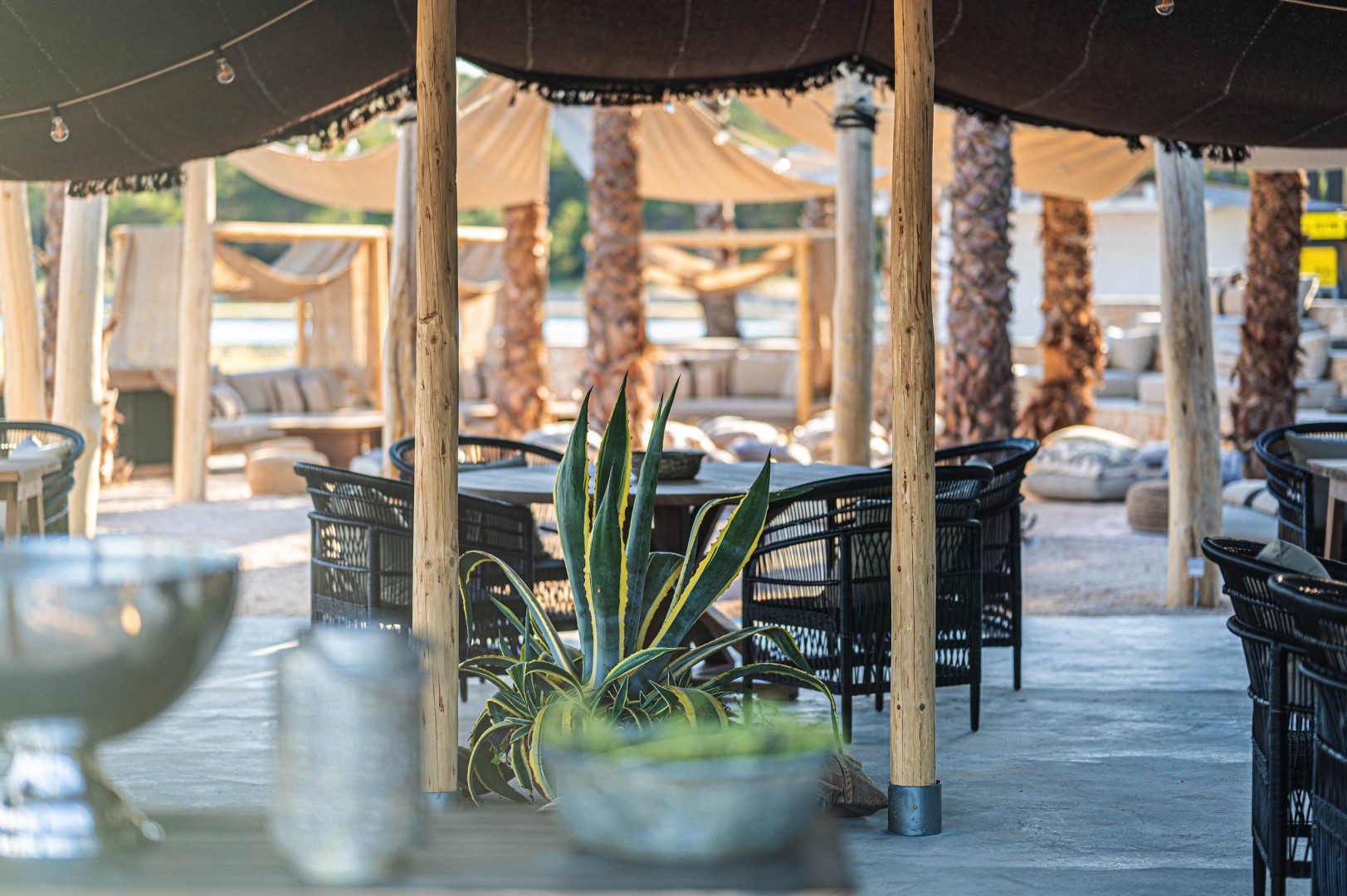Smješten je tik uz more i podijeljen na nekoliko različitih cjelina. Sama plaža omogućuje posjetiteljima da upijaju jadransko sunce, a svako mjesto na plaži sastoji se od dvije zasebne ležaljke, marokanskog stolića i suncobrana. Tattva Lounge je idealan za veće grupe koje žele provesti opušten dan na plaži jer je riječ o prostoru koji je opremljen udobnim sofama i namještajem, a koji poziva na odmor, zabavu i opuštenu klopu s društvom. Za male grupe koje traže cool ambijent, Tattva preporučuje druženje u njihovom Kashbahu koji ima jastučiće za sjedenje na podu ispod palmi blizu DJ-a, a okružen je prirodnim kamenim stepenicama, dočaravajući tako oazu usred pustinje. Za one koji vole malo ekskluzivnija privatna okupljanja, osmišljen je Möet Desert Camp, a riječ je o dijelu kružnog oblika, s jastučićima na podu, savršenom za poticanje povezanosti i zajedništva.