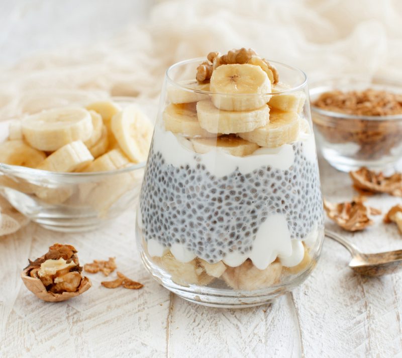Chia puding: Pomiješajte sjemenke s bademovim mlijekom i ostavite da odstoje preko noći. Dodajte svježe voće za doručak iz snova.