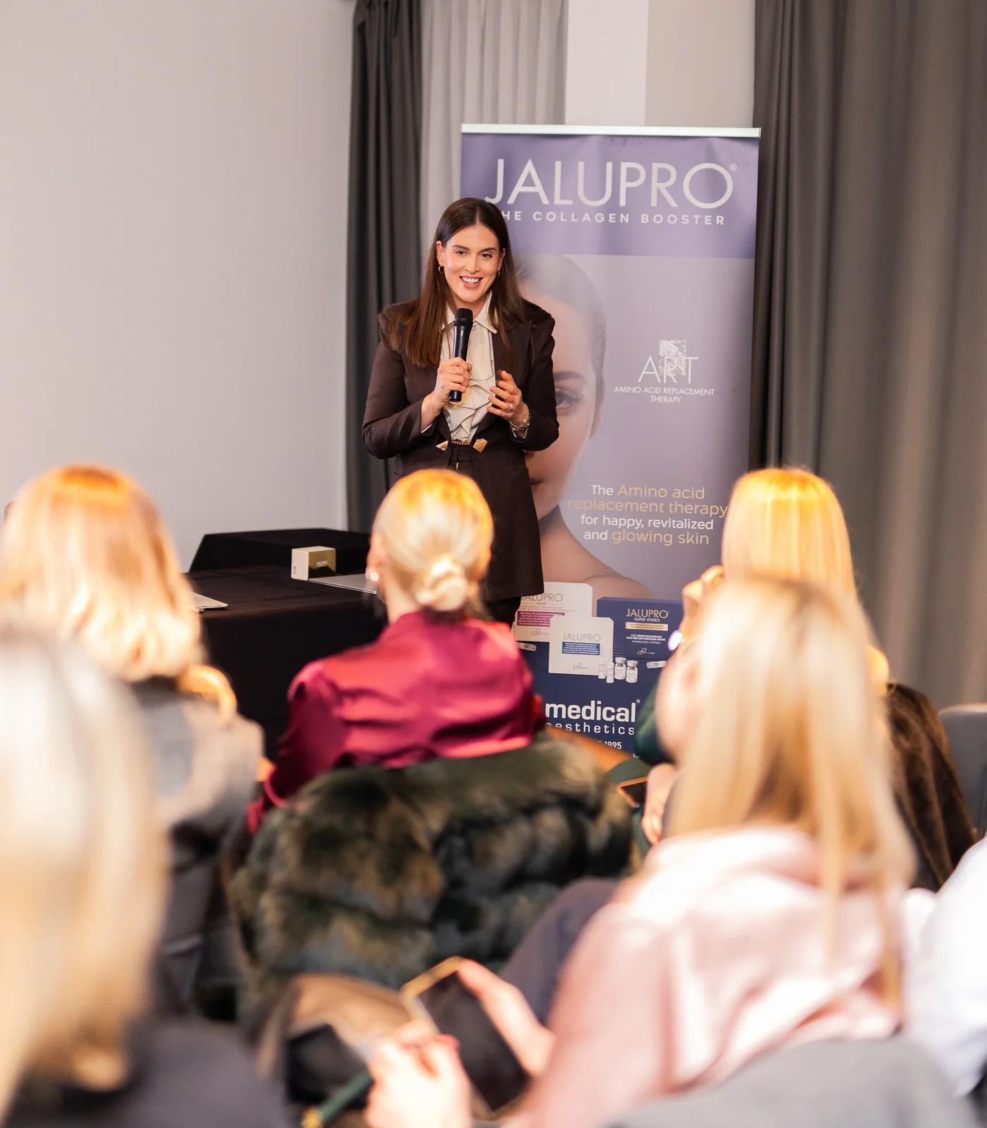 Jedna od vodećih tema bila je razumijevanje starenja kože. Specijalistica dermatologije i venerologije dr. Mia Šušak Crnčević iz poliklinike MediDerm objasnila je procese starenja kože, utjecaj vanjskih i unutarnjih čimbenika na gubitak elastičnosti i propadanje tkiva te procese kojima potičemo proizvodnju kolagena, dok je dr. Anđela Prolić iz poliklinike DermaMed predstavila Jalupro biostimulatore kože čije djelovanje značajno potiče prirodnu obnovu kože i proizvodnju kolagena, obnovu vlastitog tkiva uz dugotrajno održavanje svježine i hidracije, a s obzirom na jedinstvenu formulaciju kombinacije visoke koncentracije hijalurona, aminokiselina i peptida daje odmah vidljive rezultate.