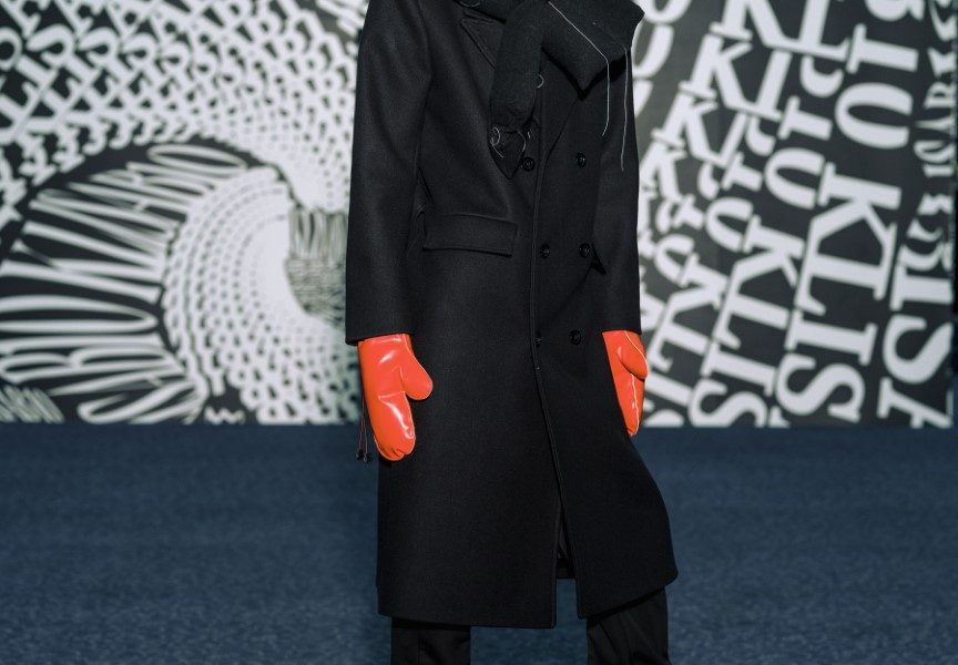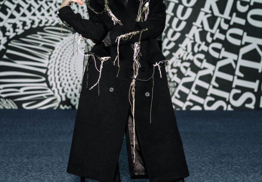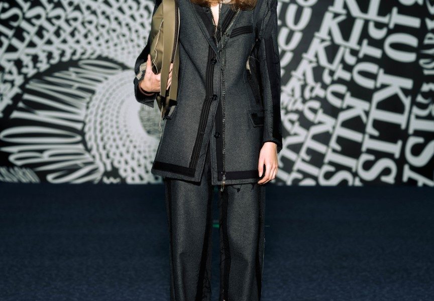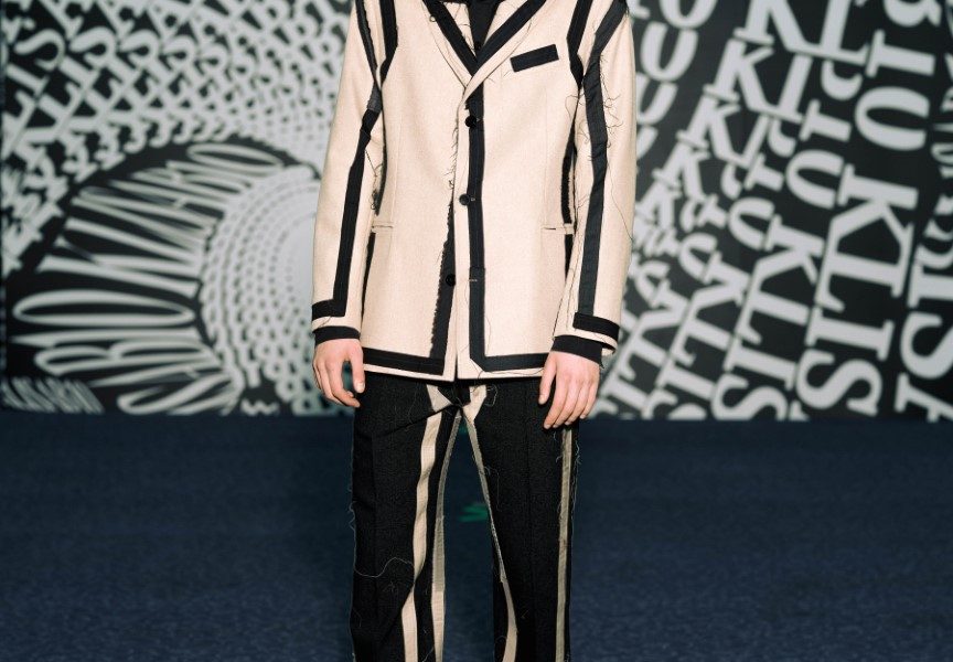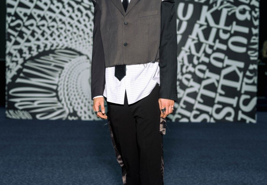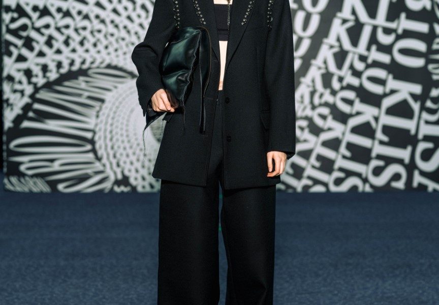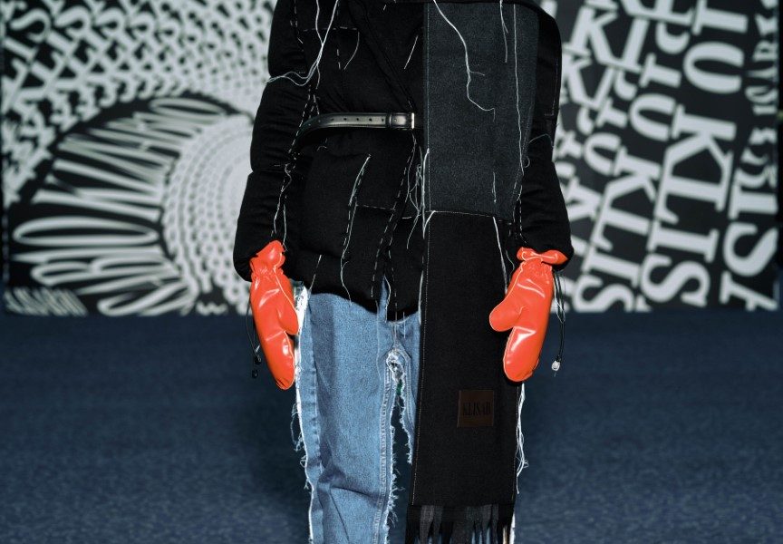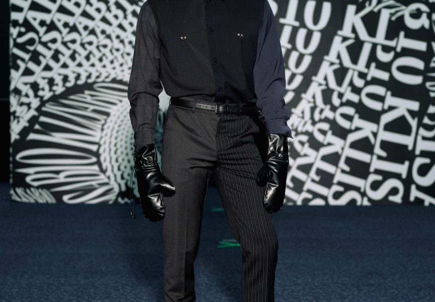 Dio revijskih lookova stilistica Ana Nikačević zaokružila je najnovijim modelima optičarskih brendova iz selekcije Optoteke, kao i za brend ručno pletenim balaklavama te rukavicama “za grudanje”, izrađenima od plant-based kože brenda Sabant, koja je nastala upcyclingom ostataka u proizvodnji alkoholne industrije te nosi naziv Gin skin™, u crvenoj i crnoj boji. Upravo je upcycling jedna od tehnika koju KLISAB beskompromisno provlači kroz svoj rad. Ovoga puta prekrajanje postojećih materijala i modela u kolekciji iznjedrilo je sakoe čiji naglasak s ramena pomalo neočekivano pada na rukav – oni su ovoga puta ili kompletno skinuti s ramenog šava ili naizgled nemarno rasparani te repozicionirani na manje očekivana mjesta.