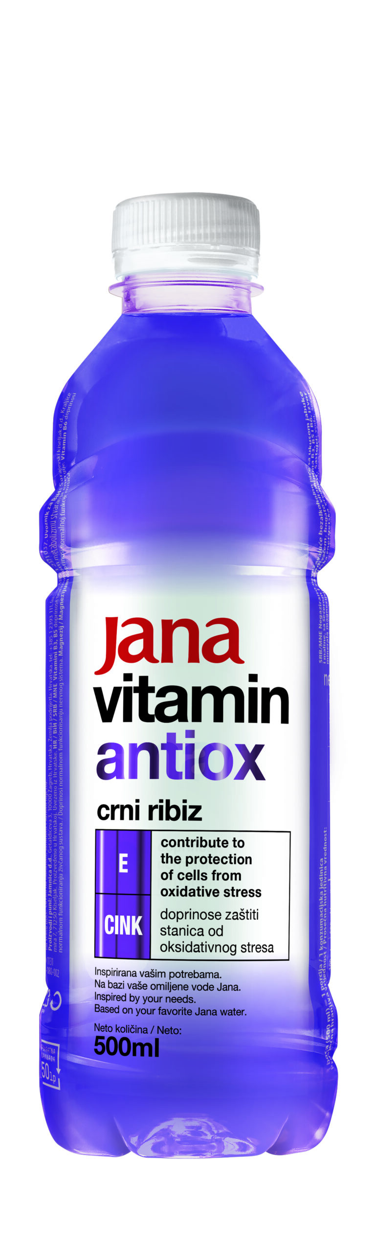 Jana vitamin antiox najnovija je predstavnica palete Jana vitamin koja u osvježavajućem okusu crnog ribiza donosi značajan udio dnevnih potreba za vitaminom E i mineralom cinkom. Ovi aktivni sastojci doprinose zaštiti stanica od oksidativnog stresa, donoseći time blagotvoran učinak za zdravlje.