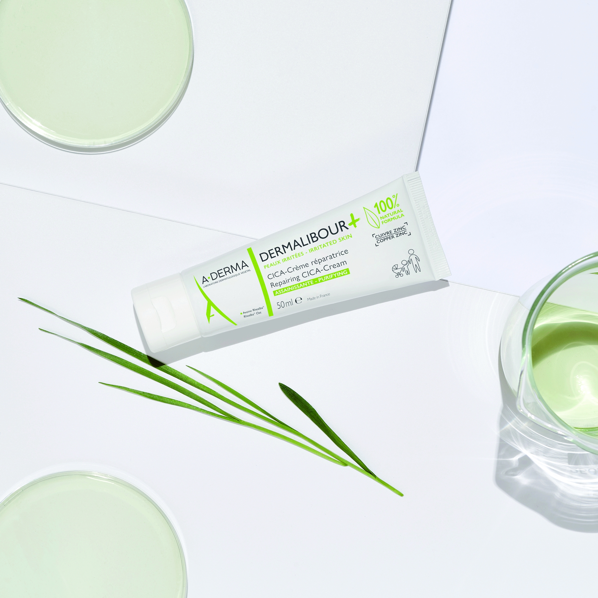Priča o ovom vrijednom supermineralu za zdraviju kožu započinje 1700. godine kad je Jacques Dalibour, kirurg vojske Luja XIV, razvio antiseptičku otopinu za liječenje rana na bazi cinkova sulfata i bakrova sulfata, što je poslužilo kao inspiracija Dermatološkim laboratorijima A-DERMA da postanu pionir na tržištu bakar-cink proizvoda, nudeći rješenja za iritiranu kožu cijele obitelji. Bilo da je riječ o suhim ili vlažnim iritacijama, koži su potrebni umirujući proizvodi s antibakterijskim učinkom koji će i ojačati funkciju barijere. Proizvodi iz DERMALIBOUR+ linije sadrže ekskluzivnu kombinaciju djelatnih tvari: soli bakra i cinka udružene s iznimnim biljnim sastojkom, ekstraktom izdanaka Rhealba® zobi te biljnim uljima, uključujući ulje jojobe.