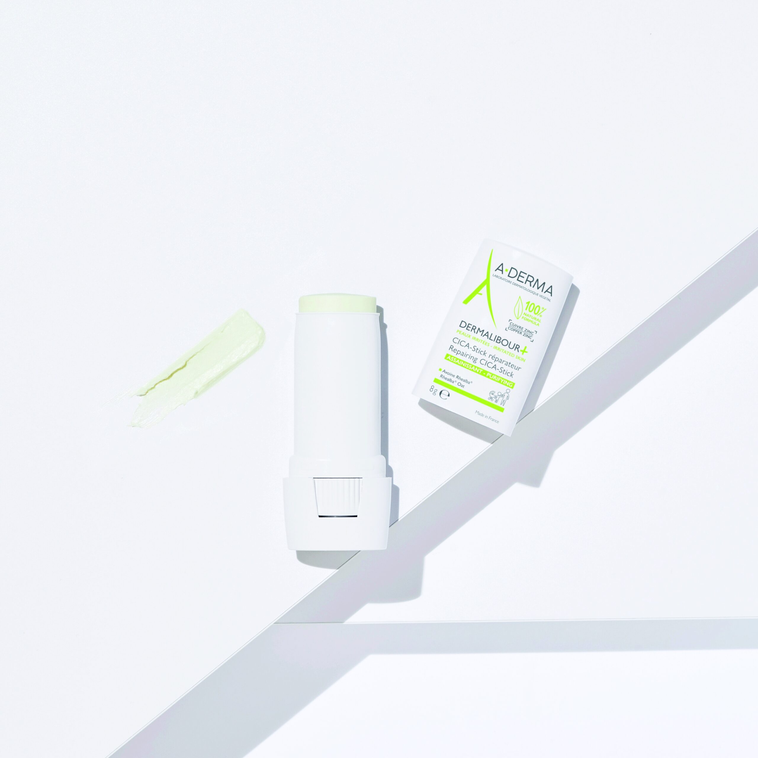Dermalibour+ obnavljajući CICA-stik, pročišćavajući, formule 100 % prirodnog podrijetla, predstavlja praktično putno pakiranje ili format za lokalizirana područja iritirane kože lica i tijela, za dojenčad, djecu i odrasle.