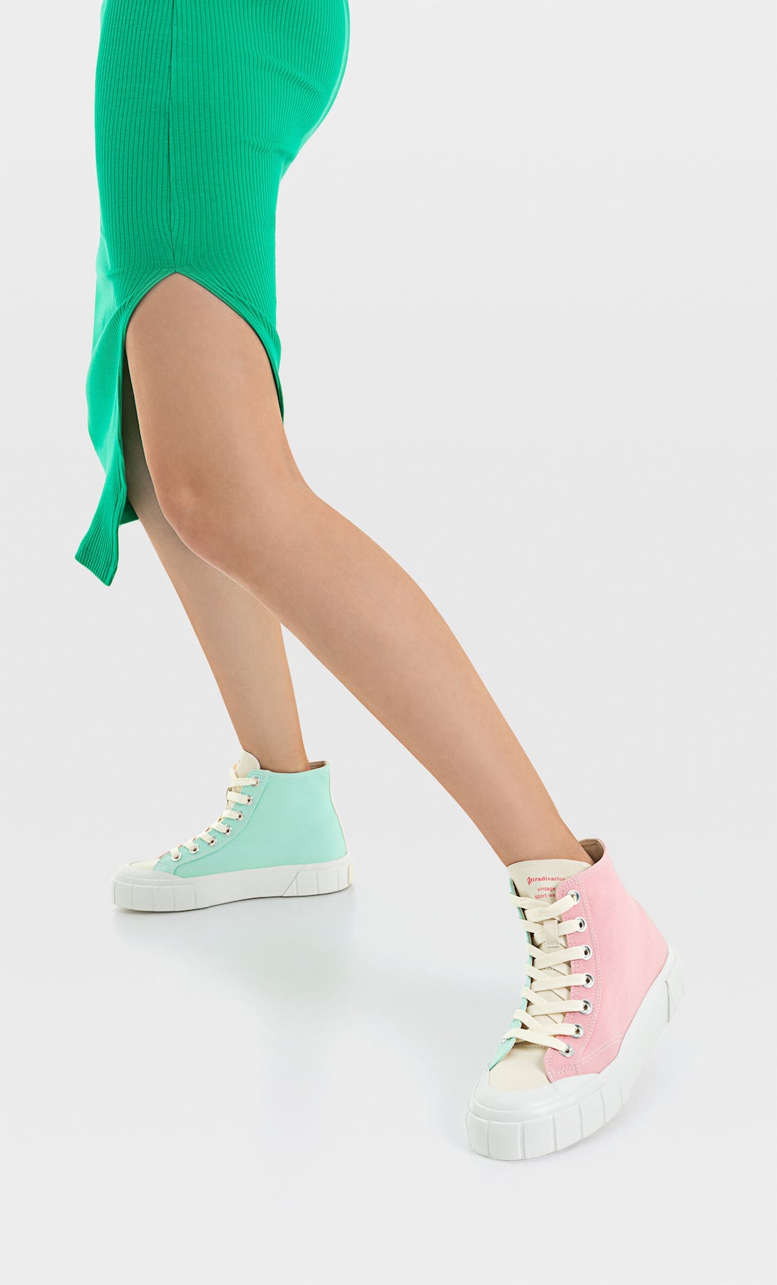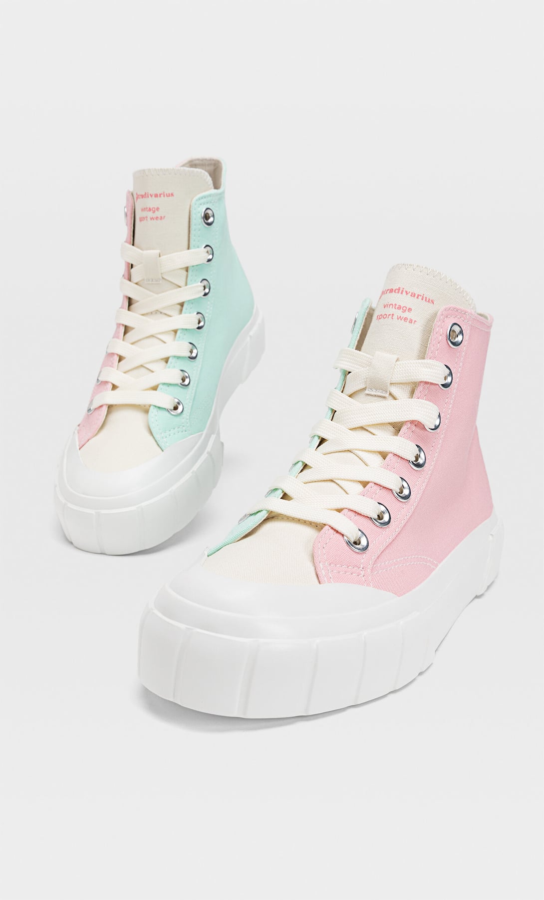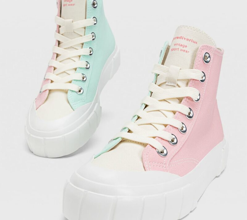 Stradivarius je odlučio zaokružiti ljetnu sezonu predivnim izborom modela tenisica pa možda nije naodmet da novi par nabavite već danas – za drugu sezonu. Očarale su nas njihove “starke”, to jest visoke tenisice od tkanine u nježnim, pastelnim bojama. Ove tenisice čini sastav od 90 posto pamuka i 10 posto gume, a unutarnji potplat je od sto posto pamuka. Održavanje je sasvim jednostavno, tako da ih stvarno možete nositi i godinama.