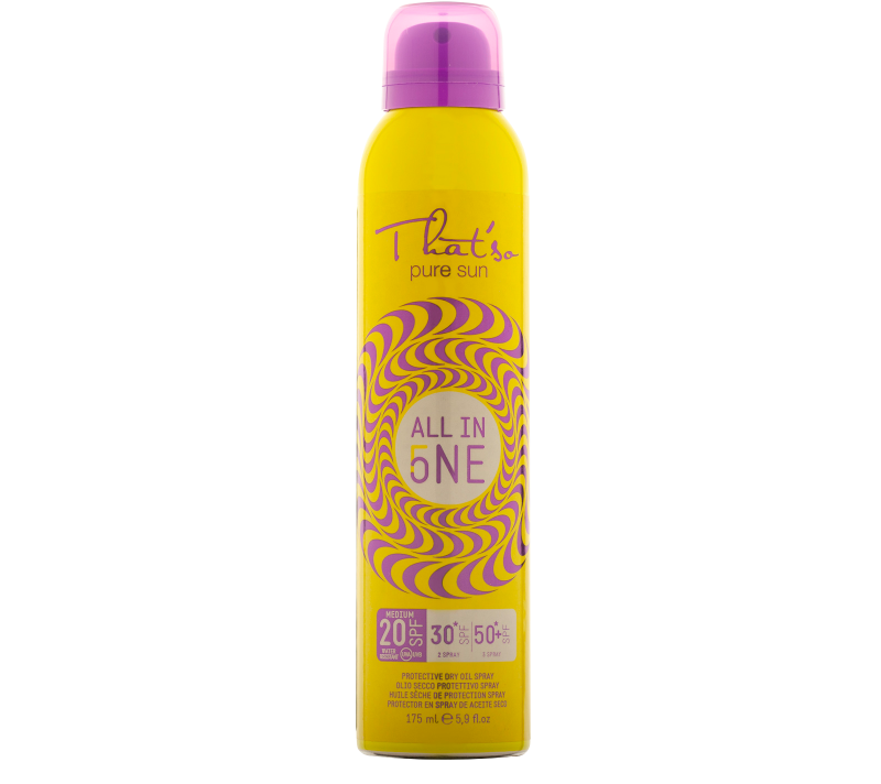 Posebno osmišljena All-in-one linija sadrži visokokvalitetne sastojke za zaštitu od sunca s 3 faktora u 1 spreju, koje štite od zraka sunca te pomažu i nakon sunčanja. Neki proizvodi sadrže i melanup+tm, koji stimulira brže tamnjenje na suncu. Pogodni su za cijelu obitelj.