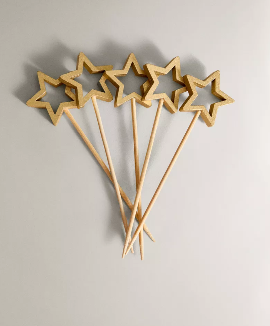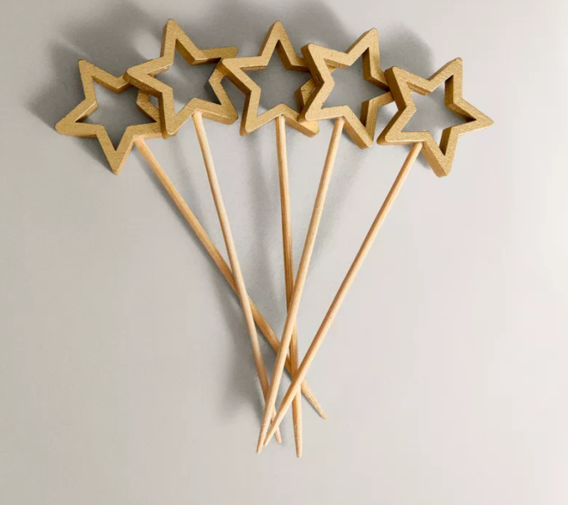 Za oko su nam zapeli drveni štapići sa zvijezdom na vrhu, kruti ukras za božićno drvce od stakla i metala u obliku mašne, kao i ukrasna metalna girlanda s grančicom božikovine i lišćem te lampicama koja radi na utikač.