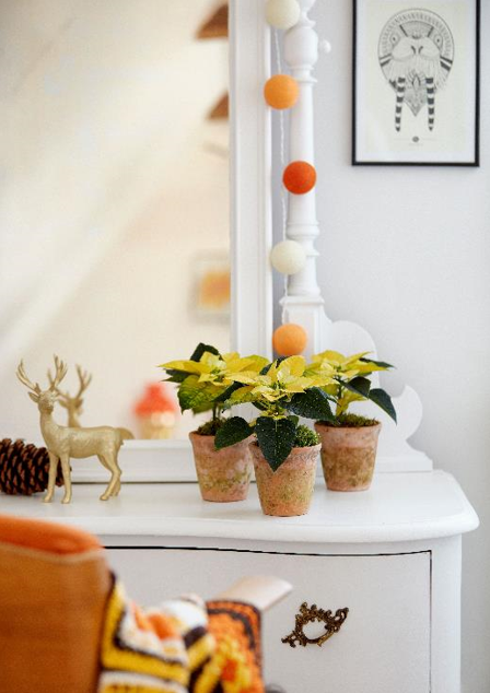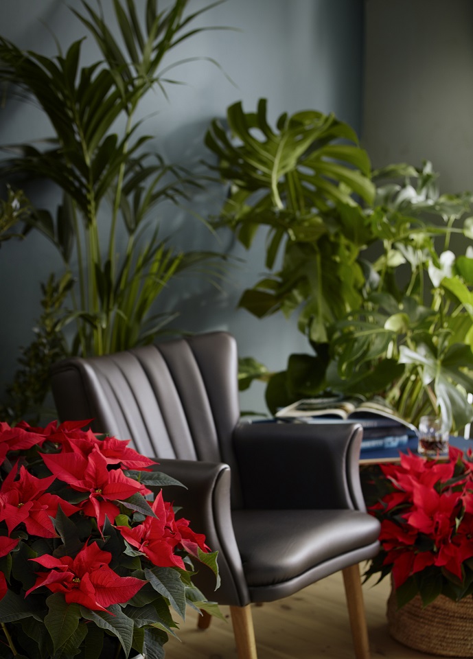 Iznad: Dobro došli u džunglu! Žarkocrvena boja božićnih zvijezda u savršenom je kontrastu sa zelenilom zidova i ostalim sobnim biljkama, dajući prostoriji dodatnu toplinu i svjetlinu.